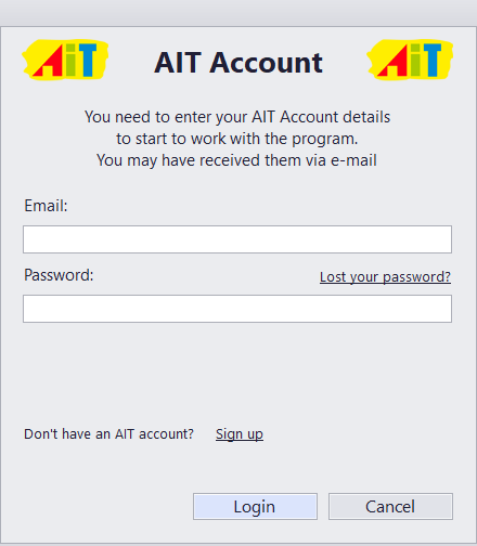To start your 30-day trial, please enter the e-mail and password associated with your AIT account. If you do not have an AIT account, please click Sign Up and enter your registration information.
